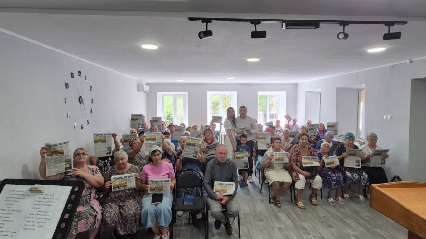 Today, the couple lives in Vysokopillia, Kherson region — about 45–50 km from the front line. Before the war, the local congregation had around 50 members; today, only 12 remain. Yet each gathering attracts 50–70 people.