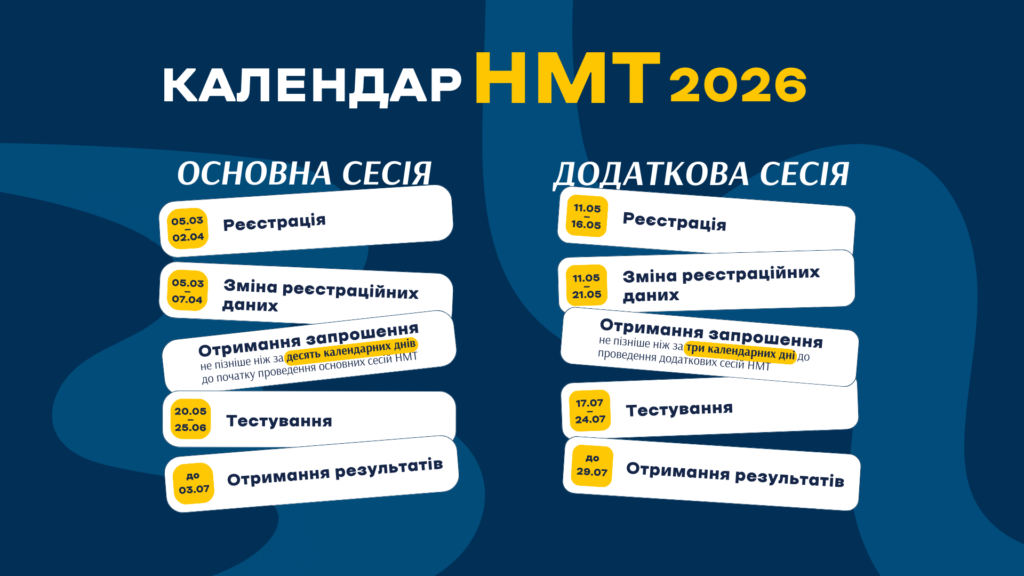 Нижче для вашої уваги календар проведення НМТ-2026.