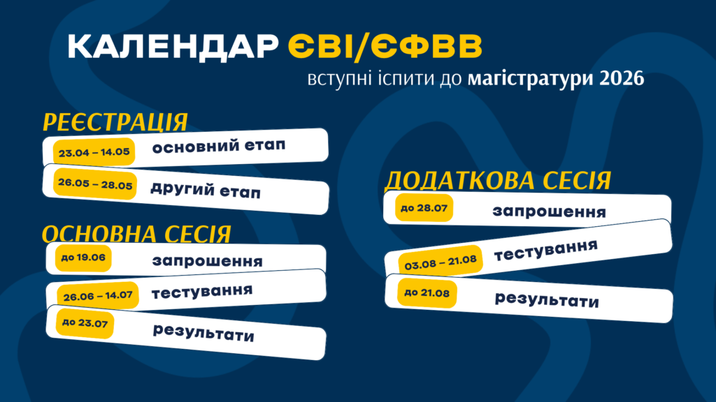 Нижче для вашої уваги календар проведення ЄВІ/ЄФВВ-2026 для вступників до магістратури: